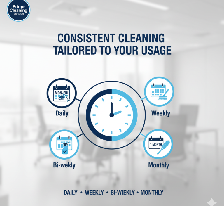 Welcome to Prime Cleaning London, your dedicated partner for maintaining immaculate and hygienic business environments across the capital. We are the leading commercial cleaning company in London, specializing in tailored solutions that reflect the professionalism and quality of your brand. As trusted commercial cleaners in London, we understand that a clean workspace is essential for employee health, productivity, and making a powerful first impression on clients.